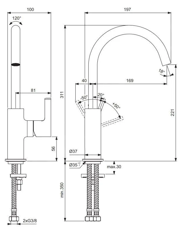 - tratamiento contra vandalismo: aireador oculto Caché M16,5×1 con limitador de caudal