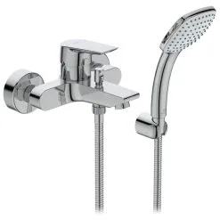 Grifo de bañera de pared con teleducha, manguera y soporte de ducha