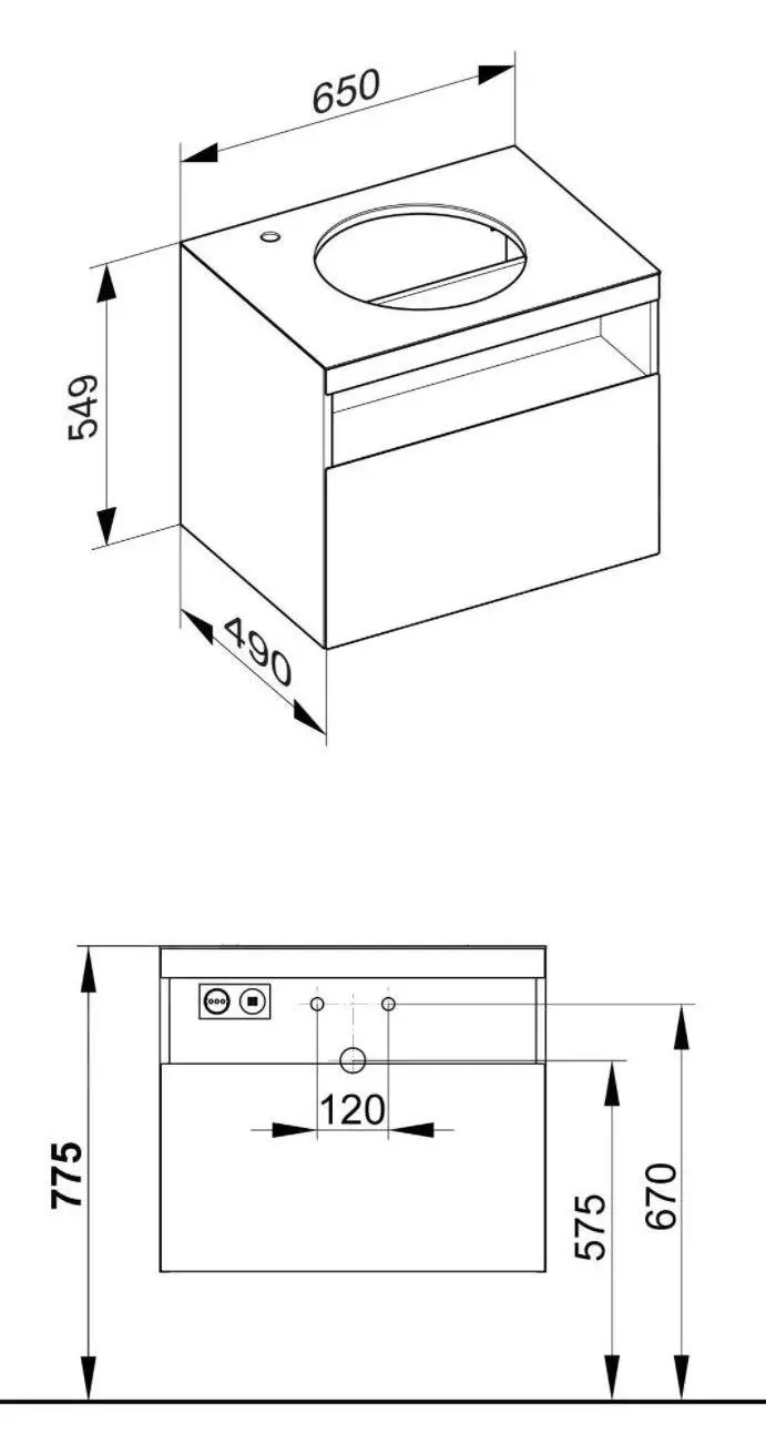 Mueble bajo lavabo circular, orificio para grifo a la izquierda