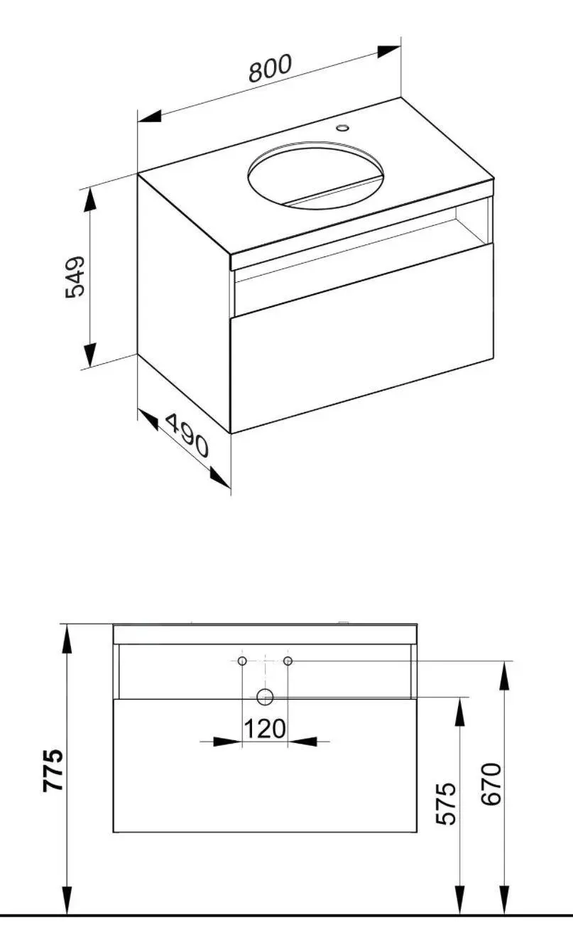 - 1 orificio para grifo a la derecha en la placa del armario