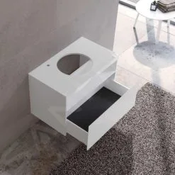 Mueble bajo lavabo circular, orificio para grifo a la izquierda, con sifón