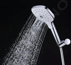 La teleducha kielle Vega llama la atención a primera vista por su aspecto moderno. La cautivadora combinación de blanco y cromo también se ve acentuada por la combinación de formas angulares con líneas redondeadas. Gracias a este diseño versátil, puedes colocar el conjunto kielle Vega en cualquier baño. Pero el aspecto no es lo único digno de mención. La teleducha kielle Vega también te deslumbrará con su rendimiento. Proporciona 3 chorros de agua que se centran en las diferentes necesidades del usuario. El suave chorro de lluvia proporciona una atmósfera relajante, mientras que el intenso chorro de masaje ayuda a relajar los músculos agarrotados y hace circular la piel a fondo. El chorro combinado combina entonces las dos corrientes anteriores para crear un medio de limpieza perfecto.
