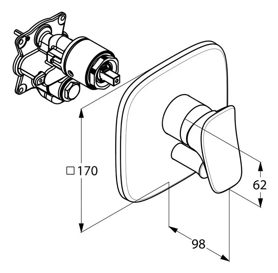 - cartucho cerámico con la posibilidad de limitar la temperatura máxima del agua