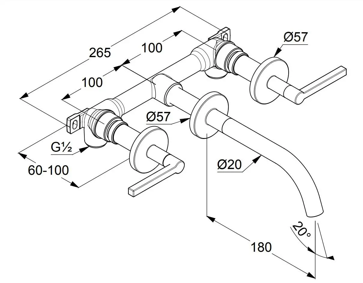 Grifo empotrado para lavabo Puristic con cuerpo de montaje