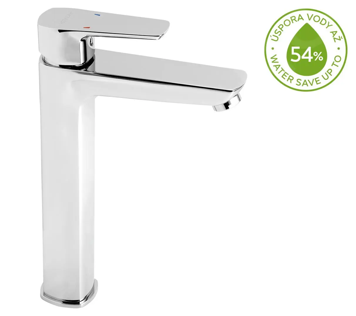 - aireador plegable con función de ahorro con un caudal de sólo 7,5-9 l/min, lo que ahorra hasta un 54% de agua