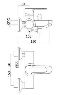 - longitud del caño 150 mm, paso 150 mm