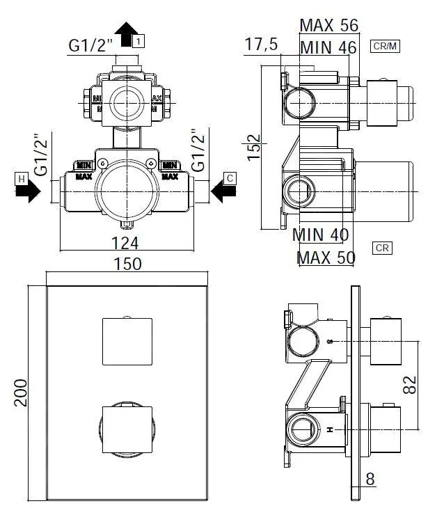Grifo empotrado de ducha con termostato, para 1 dispositivo