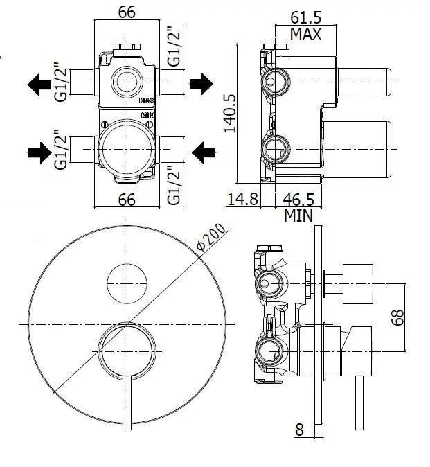El grifo incluye el cuerpo de montaje empotrado.