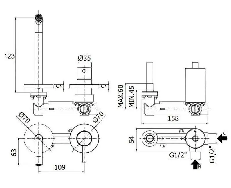 - instalación a cuerpo de montaje empotrado (está incluido)