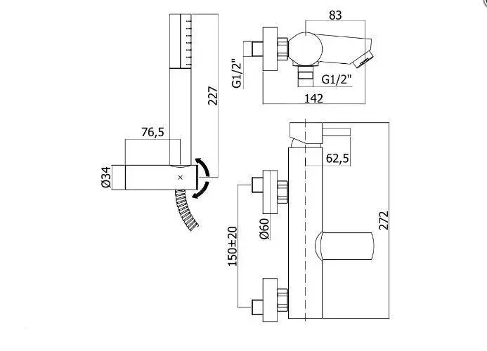 Grifo monomando de bañera de pared, con accesorios de ducha