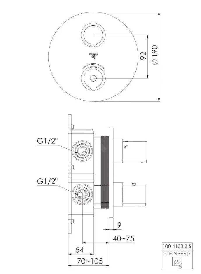Grifo empotrado termostático para ducha, sin cuerpo de montaje