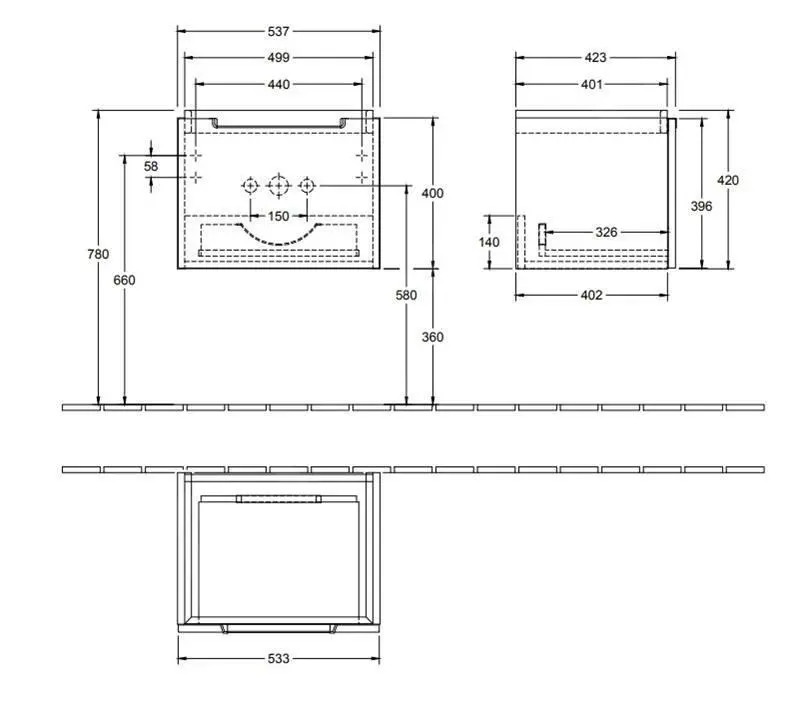 - dimensiones del armario: 537 x 420 x 423 mm (ancho x alto x profundidad)