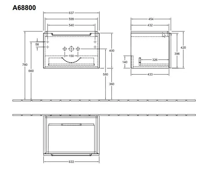 - dimensiones del armario: 637 x 420 x 454 mm (ancho x alto x profundidad)