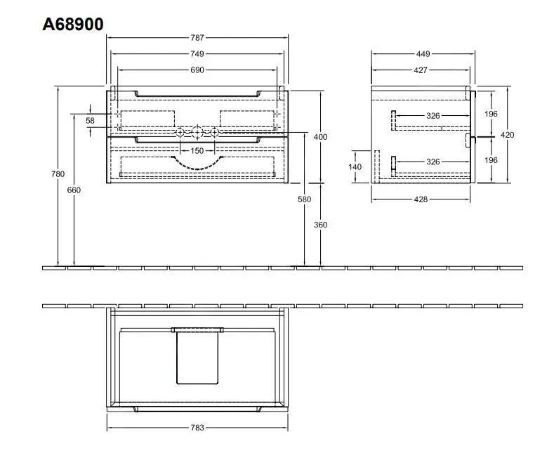 - dimensiones del armario: 787 x 420 x 449 mm (ancho x alto x profundidad)